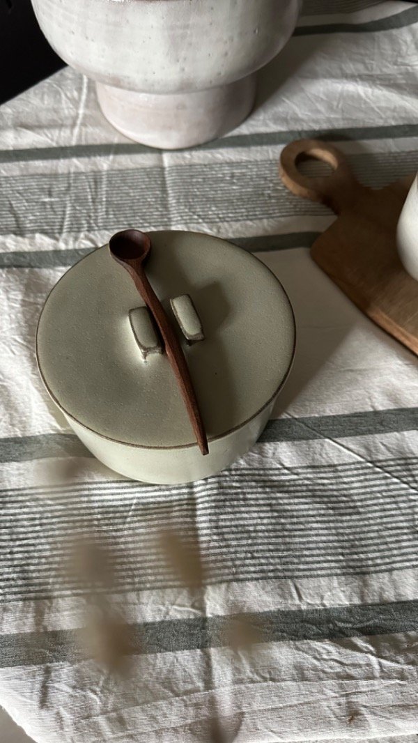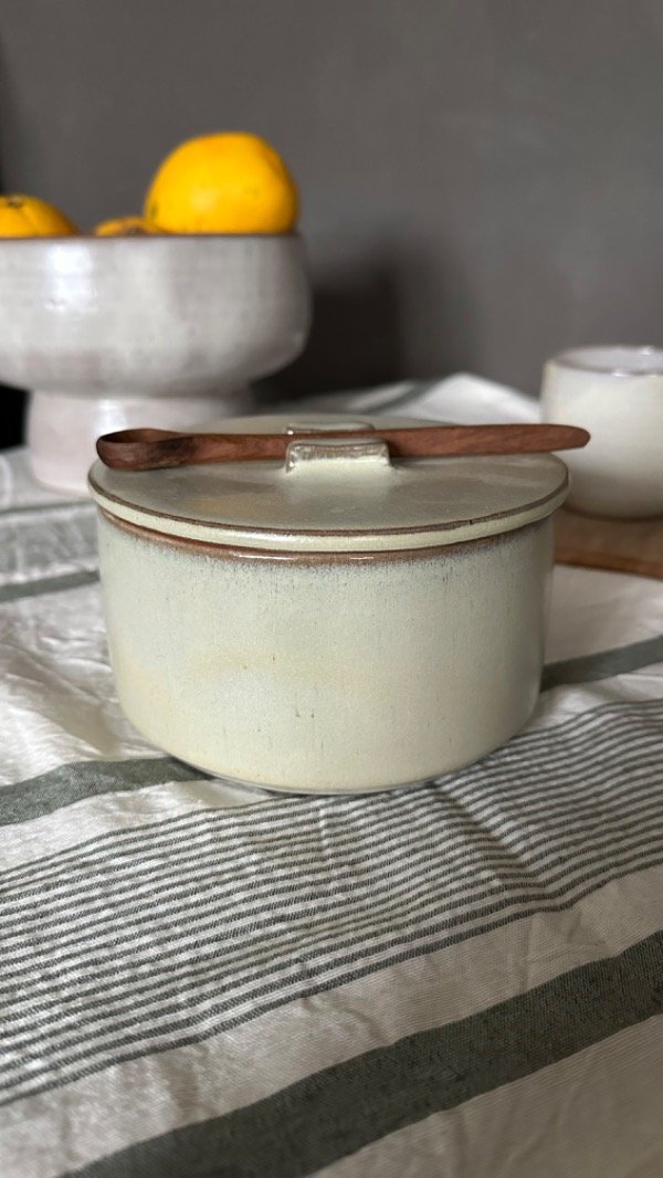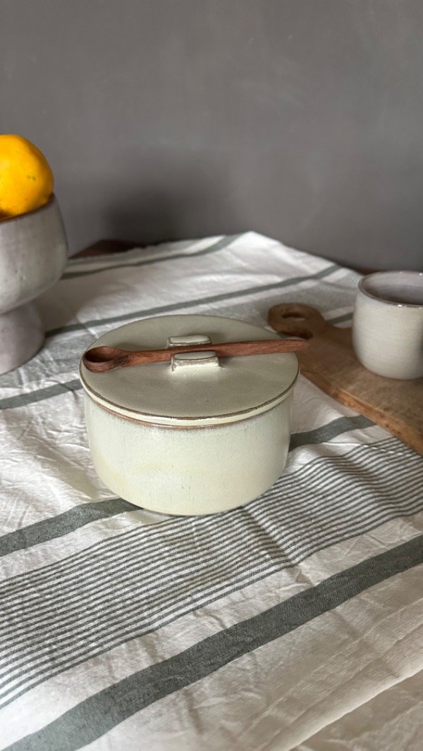Este frasco INCLUYE cucharita de madera hecha a mano por manos locales, y curada con aceite y cera de abeja.