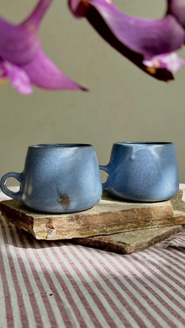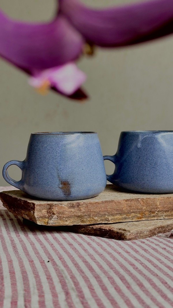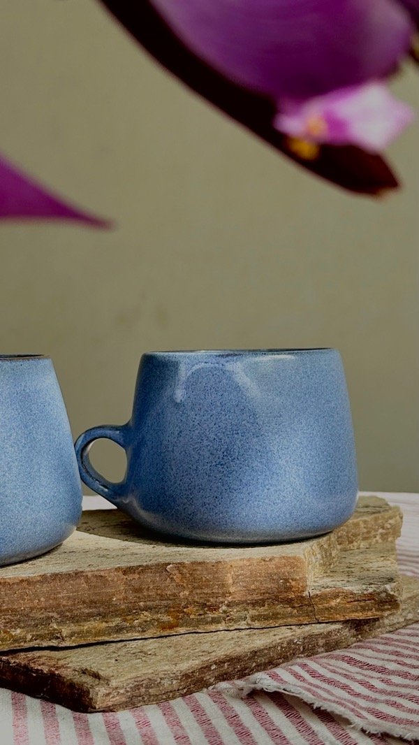 Este juego de tazas está compuesto por dos unidades de tazas LINDA cian.