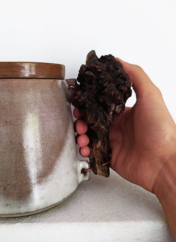 Agarre con madera y nudo de la Patagonia argentina, sujeto con alambre de cobre.