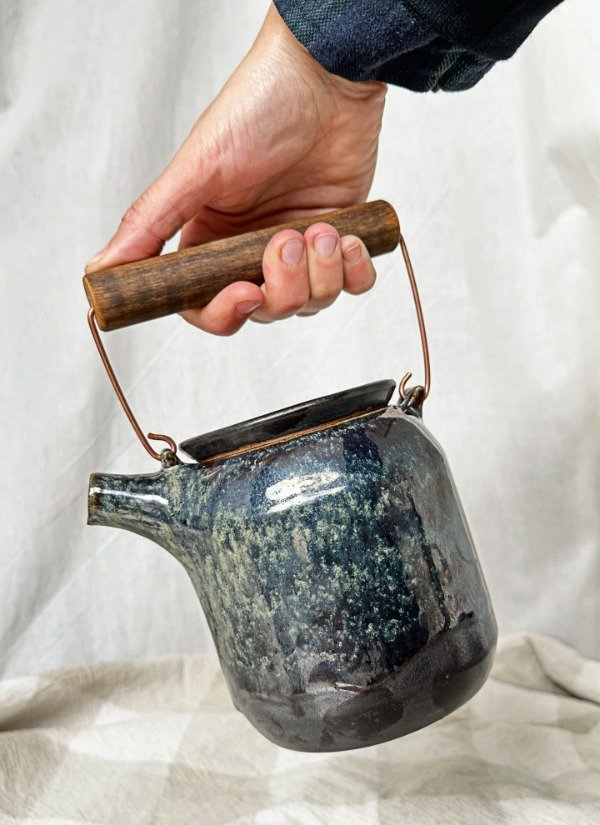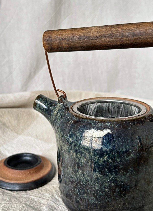 La tetera SATURNO viene con cesto de inoxidable para hacer té en hebras.